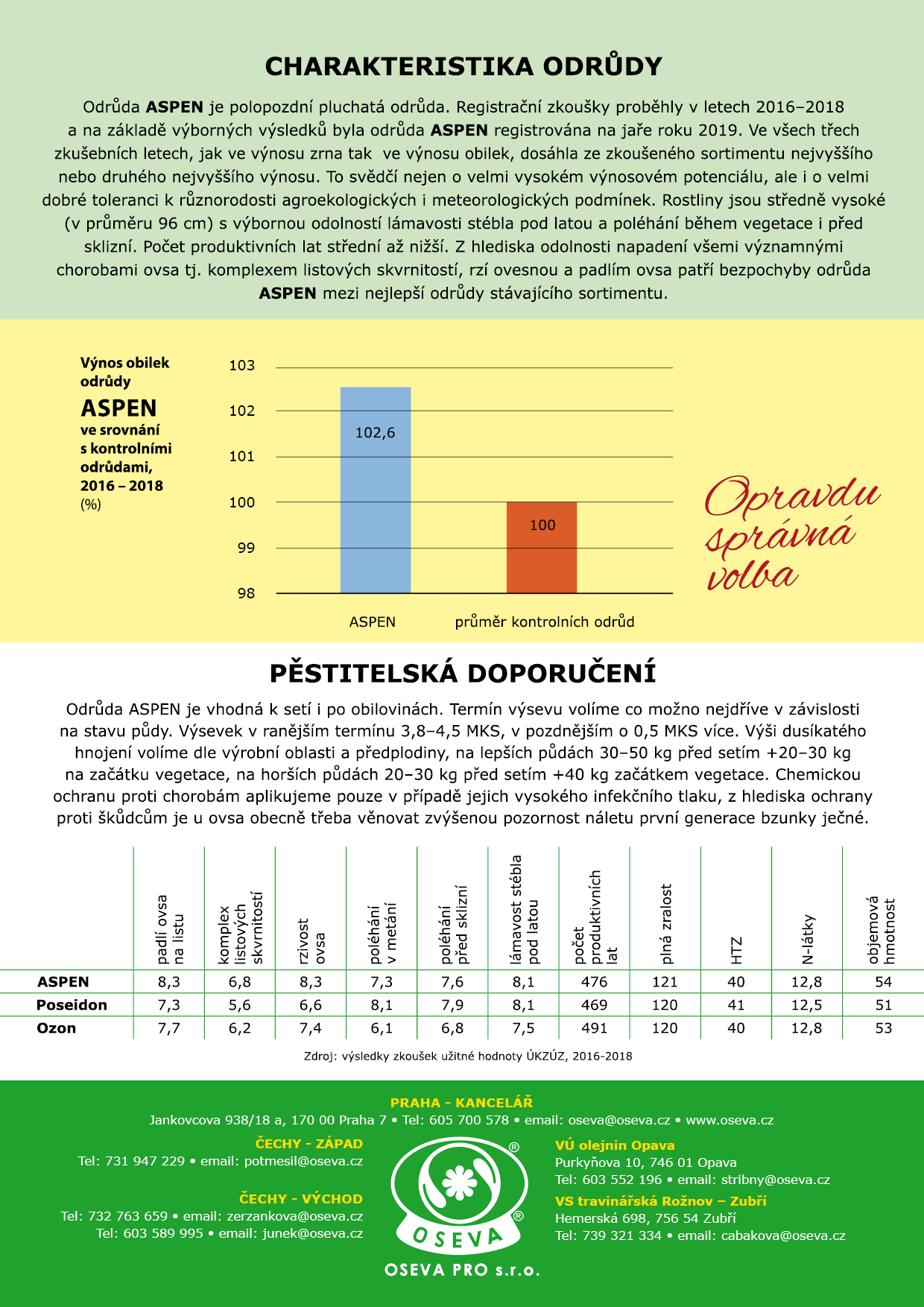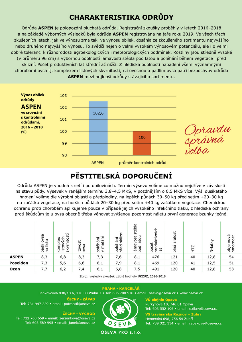 Udržovatel: Saatzucht Bauer GMbH & Co. KG, DEPluchatá odrůda se střední raností. Rostliny jsou nízké s velmi dobrou odolností proti poléhání před sklizní a jsou odolné proti lámání stébla. Velmi vysokého výnosu obilek dosahuje především vysokým počtem produktivních lat na m2 . Díky nízkému podílu pluch dosahuje též velmi vysokého výnosu zrna, které je velké, žluté s vyšším obsahem N-látek. Má vysokou objemovou hmotnost. Odrůda je odolná proti napadení padlím travním a rzí ovesnou a je středně odolná proti napadení komplexem listových skvrnitostí. Výsevek doporučujeme 4,0 – 5,0 MKS, podle úrovně pěstitelských podmínek.